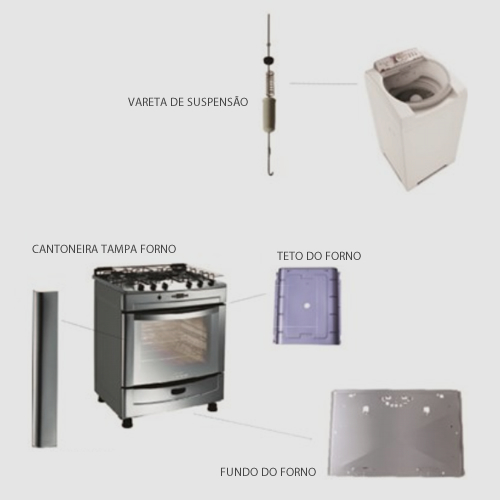 Os principais produtos são varetas de suspensão para máquinas de lavar e cantoneira, teto e fundo de forno.